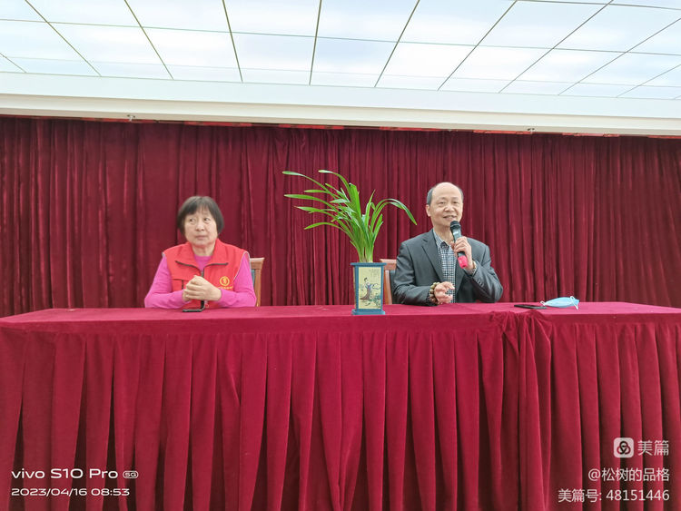 图为裁判长小丽姐与杨浦区象棋协老副会长杨兴隆先生。